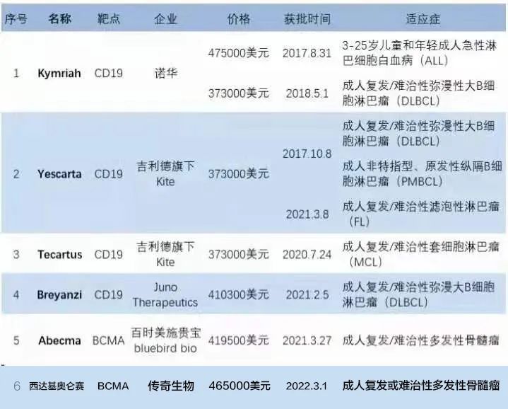 截止到2022年3月,F(xiàn)DA共批準(zhǔn)了六款 CAR-T 療法,中國(guó)也上市了兩款CAR-T產(chǎn)品——阿基侖賽注射液、瑞基奧侖賽注射液,正式迎來(lái)細(xì)胞免疫治療元年。