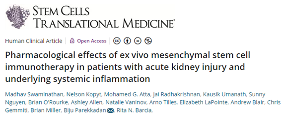 2021年,美國研究團(tuán)隊(duì)在《干細(xì)胞轉(zhuǎn)化醫(yī)學(xué)》上發(fā)布了一項(xiàng)Ib期臨床試驗(yàn)結(jié)果,初步證實(shí)新型離體使用的間充質(zhì)干細(xì)胞產(chǎn)品(SBI-101)在嚴(yán)重急性腎損傷患者中的安全性和有效性。