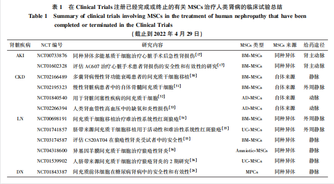 主要參考資料: 楊蘊(yùn)釗,石美涵,周誠,等. 間充質(zhì)干細(xì)胞在腎臟疾病治療中的應(yīng)用進(jìn)展[J]. 基礎(chǔ)醫(yī)學(xué)與臨床,2023,43(1):30-37. DOI:10.16352/j.issn.1001-6325.2023.01.0030.