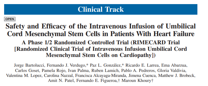 結(jié)果表明心力衰竭和射血分?jǐn)?shù)降低的患者靜脈輸注臍帶間充質(zhì)干細(xì)胞是安全的,且可觀察到接受臍帶間充質(zhì)干細(xì)胞治療心力衰竭患者在左心室功能、功能狀態(tài)和生活質(zhì)量的改善。