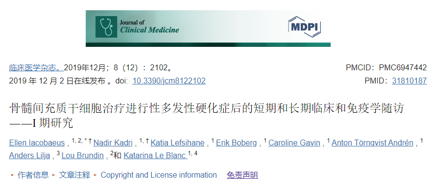 已經(jīng)進行了幾項在多發(fā)性硬化癥中使用間充質(zhì)干細胞移植的臨床研究。大多數(shù)臨床試驗涉及數(shù)量有限的受試者,這些受試者使用鞘內(nèi)或靜脈內(nèi)輸注自體BM-MSC。