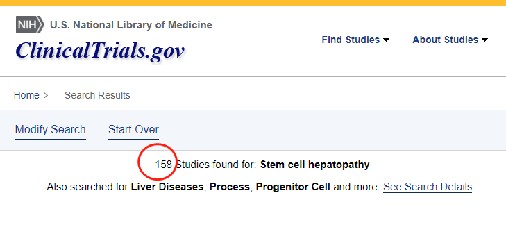 截止2022年12月,在美國國立衛(wèi)生研究院的最大臨床試驗注冊庫clinicaltrials.gov網(wǎng)站上注冊的有關干細胞治療肝病的臨床研究項目有158項。