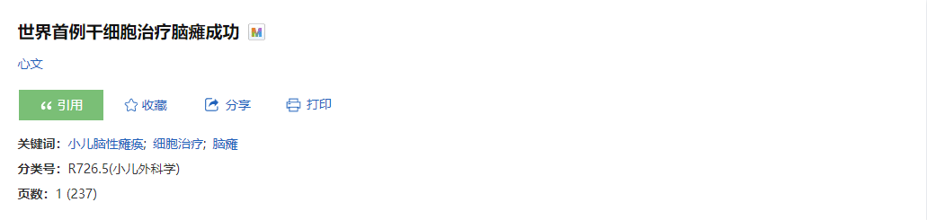 2005年,世界首例干細(xì)胞治療腦癱成功[1]