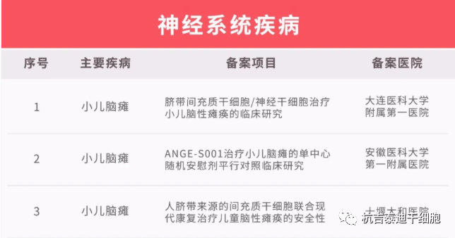2019年,大連醫(yī)科大學(xué)附屬一院劉晶教授主持的《臍帶間充質(zhì)干細(xì)胞/神經(jīng)干細(xì)胞治療小兒腦性癱瘓的臨床研究》項(xiàng)目已經(jīng)通過衛(wèi)計(jì)委備案并啟動(dòng)。