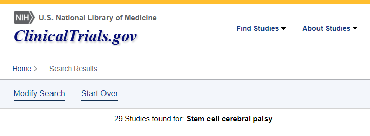 截止2023年3月,在美國(guó)國(guó)立衛(wèi)生研究院的最大臨床試驗(yàn)注冊(cè)庫clinicaltrials.gov網(wǎng)站上注冊(cè)的有關(guān)干細(xì)胞治療腦癱的臨床研究項(xiàng)目有29項(xiàng)。其中中國(guó)有五項(xiàng)!