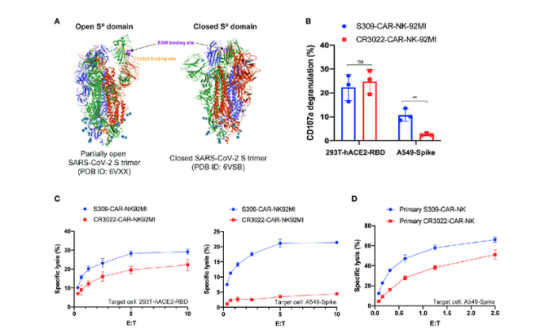 與近年來的研究結果相比,S309-CAR-NK具有較強的體外殺傷活性和細胞因子生成能力,可能具有預防新冠病毒感染的潛力,為免疫功能低下或患有糖尿病、癌癥、營養(yǎng)不良和某些遺傳性疾病的高風險新冠肺炎人群治療鋪平了道路。