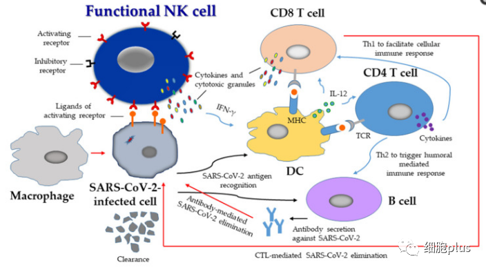 因此,足夠數(shù)量的活化功能性NK細(xì)胞發(fā)揮增強(qiáng)的脫粒和細(xì)胞因子分泌,并啟動(dòng)先天細(xì)胞毒性功能,以在早期階段消除新型冠狀病毒感染的細(xì)胞。