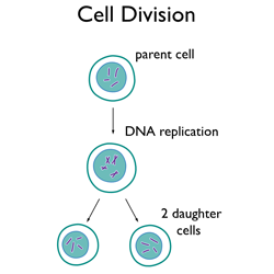 大多數(shù)細胞分裂。在分裂前不久,DNA復制,然后細胞分裂成兩個子細胞。每個細胞都有原始細胞的 DNA、細胞質(zhì)和細胞膜的完整副本。