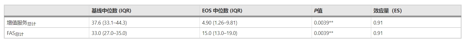 表2:基線和EOS治療后VAS和FAS總分的療效指標
