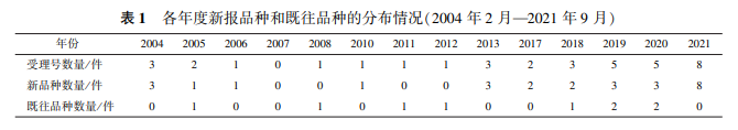 2004年申報(bào)注冊(cè)臨床的品種為3個(gè),且均在召開專家會(huì)并補(bǔ)充資料之后批準(zhǔn)其開展Ⅰ期臨床試驗(yàn)。 次年,申報(bào)注冊(cè)臨床試驗(yàn) 的受理號(hào)有2個(gè),但其中1個(gè)為既往品種根據(jù)其研究進(jìn)展提交的下一步研究計(jì)劃申請(qǐng),1個(gè)為新品種,見表1。