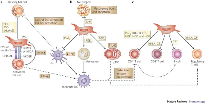 間充質干細胞旁分泌因子在免疫調節(jié)、組織再生和愈合、抗纖維化、抗凋亡和血管生成 中發(fā)揮重要作用。因此成為治療炎癥性疾病的有效方法,例如多發(fā)性硬化癥 、克羅恩病、移植物抗宿主病、系統性紅斑狼瘡和1型糖尿病 。免疫調節(jié)依賴于間充質干細胞與靶組織免疫微環(huán)境之間的相互作用。