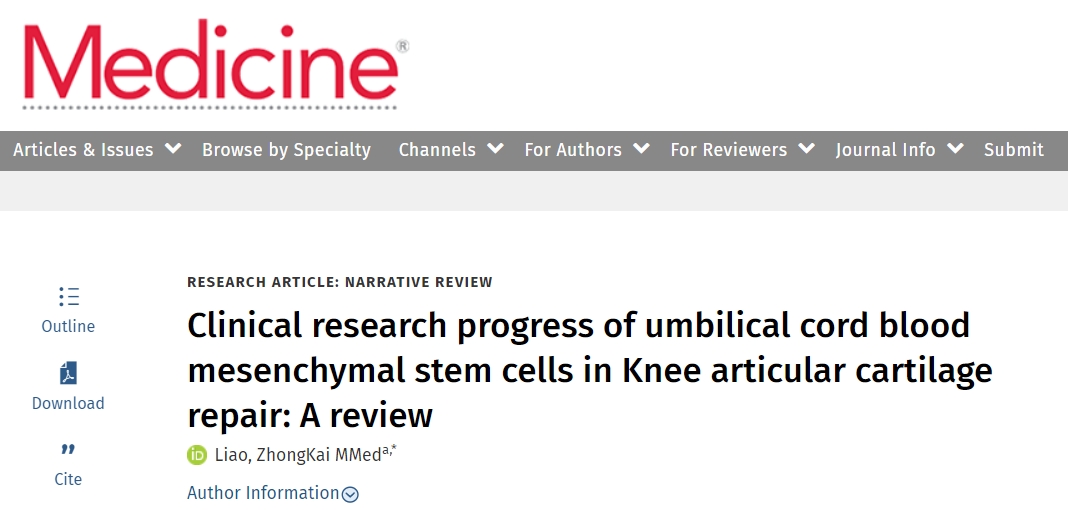 近日,海南醫(yī)學(xué)院第二附屬醫(yī)院在期刊雜志《Medicine》上發(fā)表了一篇”臍血間充質(zhì)干細(xì)胞修復(fù)膝關(guān)節(jié)軟骨的臨床研究進(jìn)展“的文獻(xiàn)綜述。