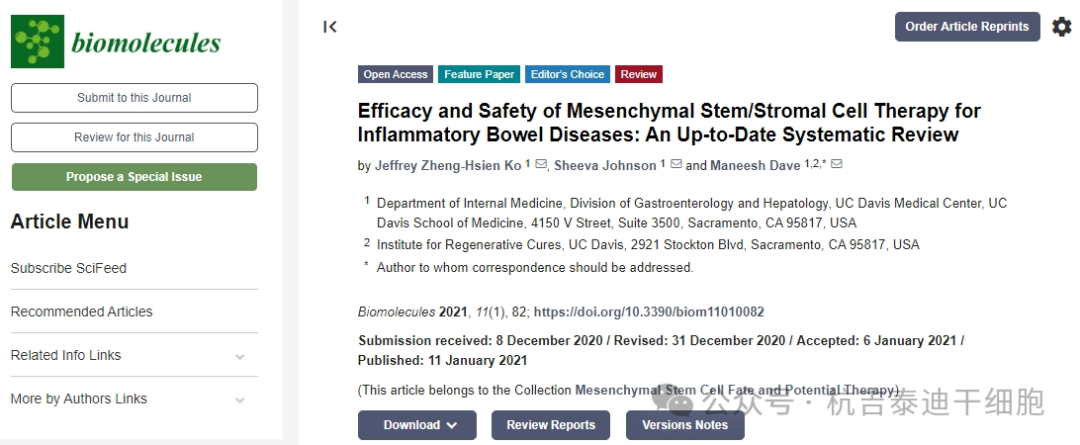 炎癥性腸病(IBD):2021年,期刊雜志《Biomolecules》生物分子發(fā)表了一篇間充質(zhì)干細(xì)胞/基質(zhì)細(xì)胞治療炎癥性腸病的療效和安全性:最新系統(tǒng)評價(jià)的文章,該綜述旨在介紹有關(guān)MSC療法在IBD中的安全性和有效性的最新研究。