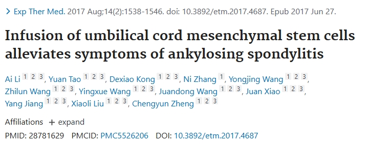 臍帶間充質(zhì)干細(xì)胞輸注可緩解強(qiáng)直性脊柱炎癥狀
