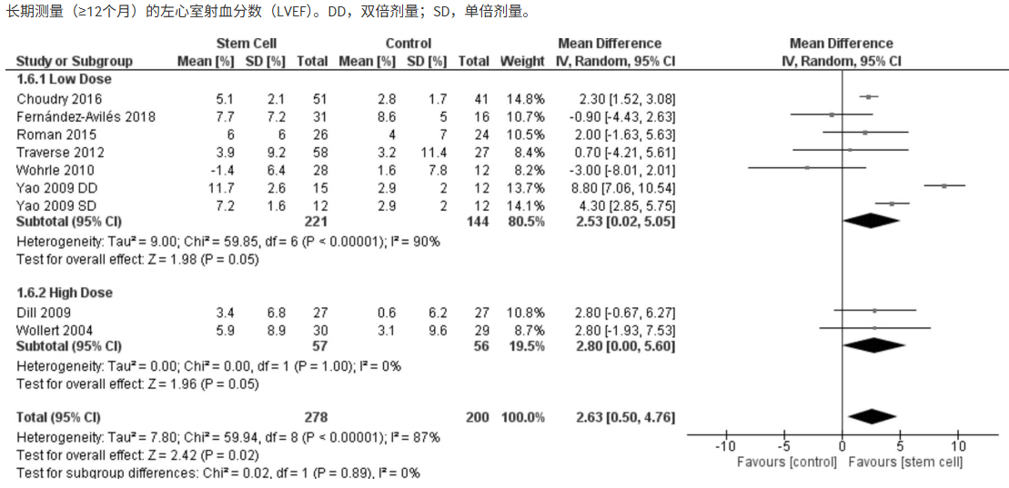 對(duì)于療效,干細(xì)胞療法并非即時(shí)見效的“特效藥”。研究顯示,患者心臟左室射血分?jǐn)?shù)(LVEF)在6個(gè)月內(nèi)的提升僅約1.23%,尚未達(dá)到統(tǒng)計(jì)學(xué)顯著水平。然而,隨著隨訪時(shí)間延長(zhǎng)至12個(gè)月以上,心功能的改善幅度逐漸明顯,LVEF平均提高了約2.63%。