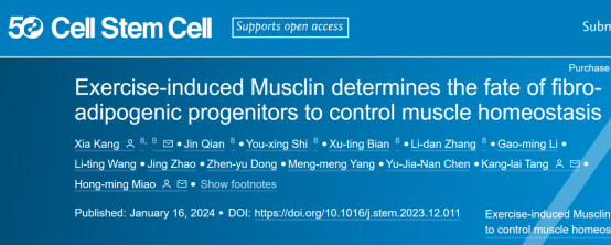 [12]Exercise-induced Musclin determines the fate of fibro-adipogenic progenitors to control muscle homeostasisKang, Xia et al.Cell Stem Cell, Volume 31, Issue 2, 212 – 226.e7