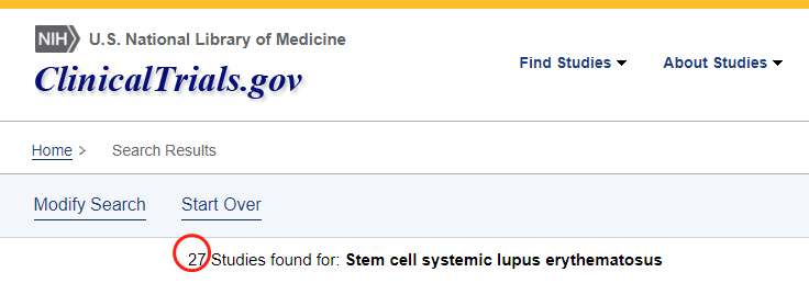 截止2022年12月,在美國國立衛(wèi)生研究院的最大臨床試驗注冊庫clinicaltrials.gov網(wǎng)站上注冊的有關(guān)干細(xì)胞治療系統(tǒng)性紅斑狼瘡的臨床研究項目有27項。