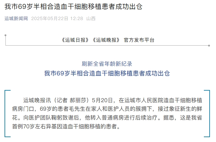69歲白血病患者??(山西運城):半相合異體移植+間充質(zhì)干細胞輔助,??總費用28萬??(醫(yī)保報銷后自付15萬)。