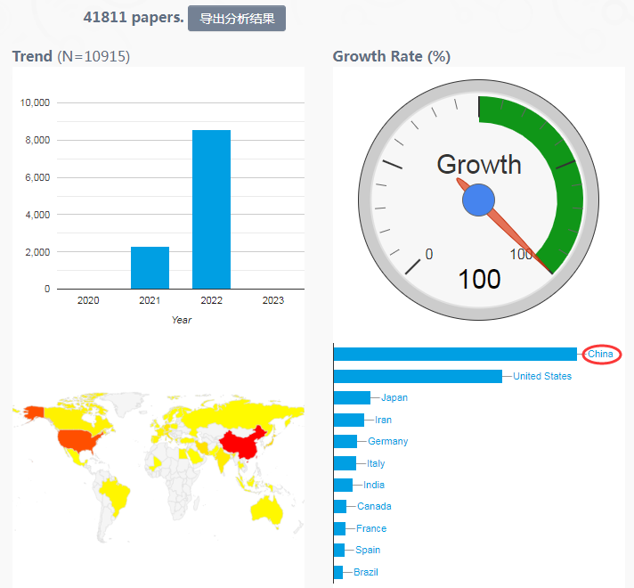 美國發(fā)表的文章數占23.6%,排在第二位。