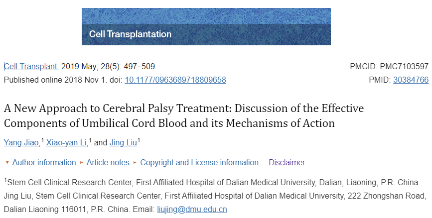 大連醫(yī)科大學(xué)第一附屬醫(yī)院干細(xì)胞臨床研究中心在一篇文章綜述中總結(jié)了臍帶血干細(xì)胞活性成分的特征及其治療腦癱的作用機(jī)制。這篇綜述重點(diǎn)介紹了有關(guān)臍帶血干細(xì)胞移植的當(dāng)前研究結(jié)果和臨床證據(jù),這些研究結(jié)果和臨床證據(jù)有助于提供治療建議、為治療干預(yù)決策提供信息,并有助于指導(dǎo)未來(lái)的研究。