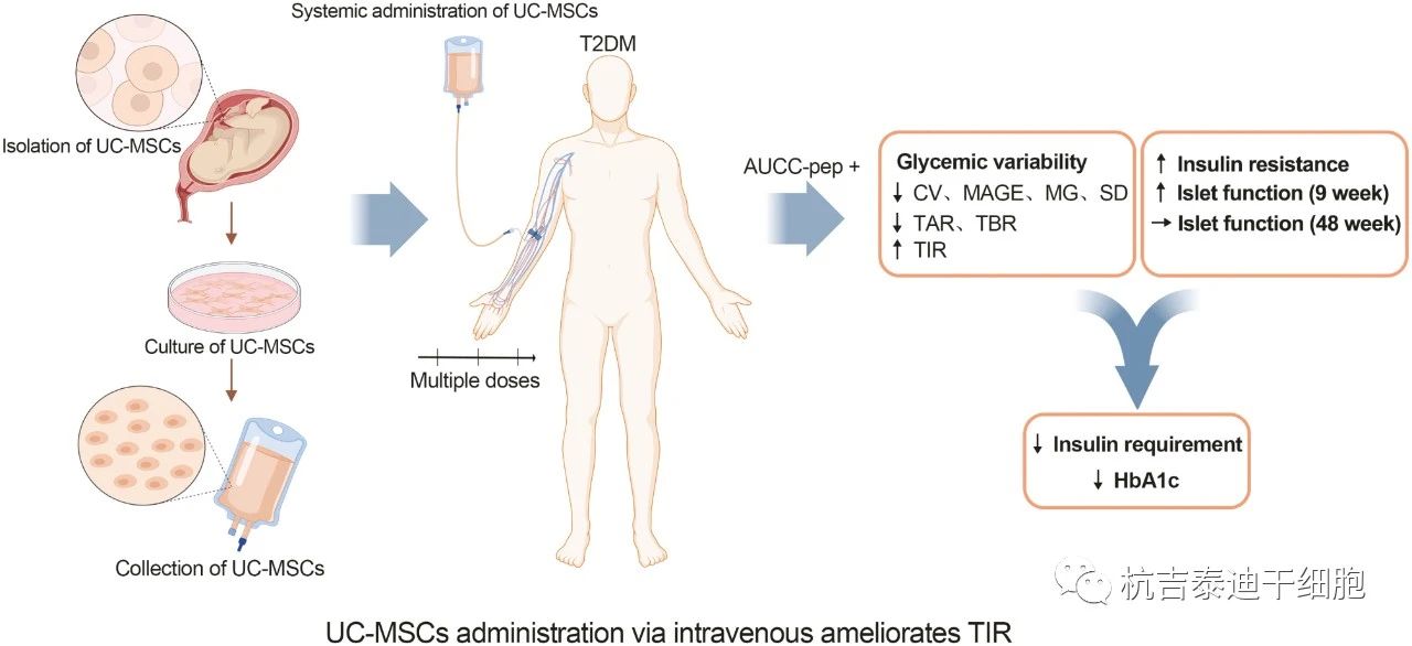 近日,解放軍總醫(yī)院第一醫(yī)學(xué)中心內(nèi)分泌科開展了一項II期研究,通過回顧性連續(xù)血糖監(jiān)測 (CGM) 評估UC-MSC對中國成人2型糖尿病 (T2D) 的療效。在這項隨機和安慰劑對照試驗中,共有73名患者被隨機分配接受UC-MSC靜脈輸注 ( n=37) 或安慰劑 ( n=36) 3次,間隔4周,隨訪48周。主要終點是TIR和糖化血紅蛋白 (HbA1c) 的變化。