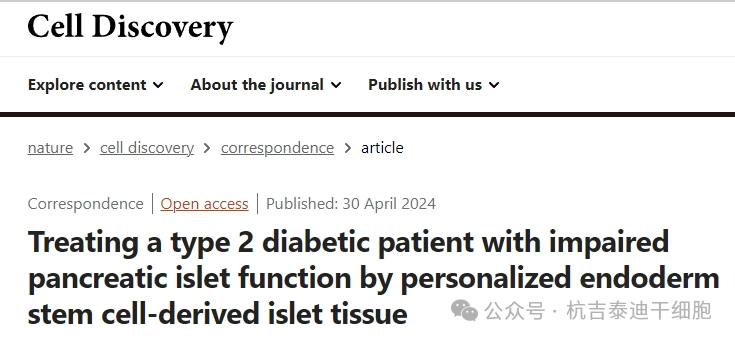 《自然》雜志報(bào)道的這項(xiàng)開創(chuàng)性手術(shù)標(biāo)志著糖尿病治療向前邁出了一大步。移植外科醫(yī)生詹姆斯·夏皮羅表示,手術(shù)徹底逆轉(zhuǎn)了她的糖尿病,此前她需要大量胰島素治療。2024年4月30日,《自然》科學(xué)雜志發(fā)表了一篇“利用個(gè)性化內(nèi)胚層干細(xì)胞來源的胰島組織治療胰腺胰島功能受損的2型糖尿病患者”的文章,該文章表明中國(guó)科學(xué)院上海生物化學(xué)與細(xì)胞生物學(xué)研究所在研究治療2型糖尿病方面也取得了類似的成功。