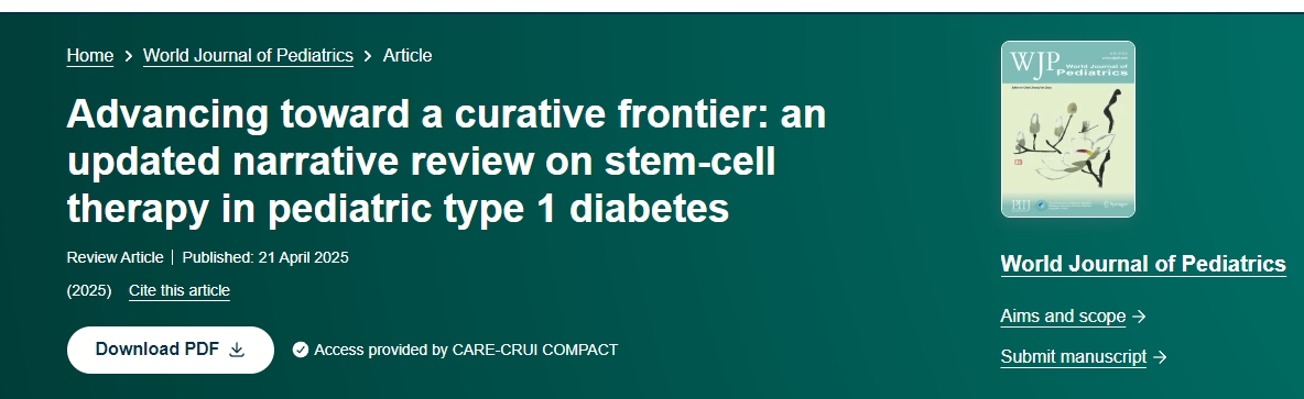 [4]Sulaiman, S., Alaarag, A., Rayyan, N. et al. Advancing toward a curative frontier: an updated narrative review on stem-cell therapy in pediatric type 1 diabetes. World J Pediatr 21, 436–446 (2025). https://doi.org/10.1007/s12519-025-00908-4