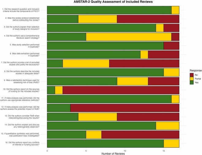 圖2顯示了所有評(píng)估項(xiàng)目的AMSTAR-2合規(guī)率,每篇綜述的完整評(píng)分詳情見(jiàn)補(bǔ)充文件表S2。