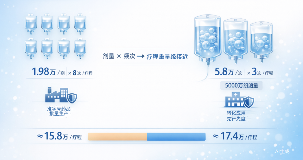 一項前沿生物醫(yī)療技術(shù)在早期應(yīng)用階段,定價往往較高。17.4萬元/療程的背后,是細胞制備、質(zhì)控、長期隨訪及嚴密醫(yī)療監(jiān)護的綜合成本。