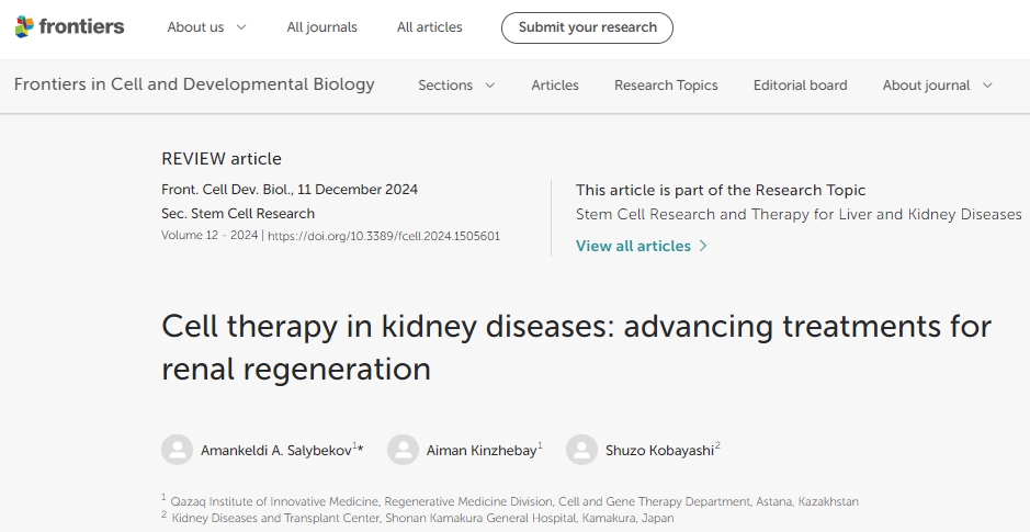 近日,期刊雜志《Frontiers in Cell and Developmental Biology》發(fā)表了一篇“Cell therapy in kidney diseases: advancing treatments for renal regeneration”的期刊綜述。該綜述全面概述了腎臟疾病細(xì)胞療法的現(xiàn)狀,追溯了從臨床前研究到臨床應(yīng)用的進(jìn)展[1]