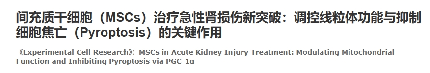 例如,2025年,《Experimental Cell Research》上發(fā)表了一項(xiàng)探究間充質(zhì)干細(xì)胞(MSCs)治療急性腎損傷(AKI)的機(jī)制的研究成果。研究人員通過構(gòu)建體內(nèi)缺血 / 再灌注(I/R)模型,以此探究MSCs治療AKI的作用機(jī)制。