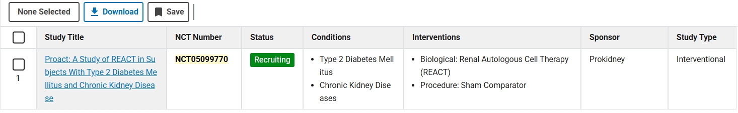 III期關(guān)鍵試驗(yàn) (PROACT 1, NCT05099770):?正在美國(guó)、亞洲和拉丁美洲約80個(gè)中心開展,評(píng)估Rilparencel對(duì)2型糖尿病引起的3b期和4期CKD患者的療效。這是支持上市申請(qǐng)的核心研究。