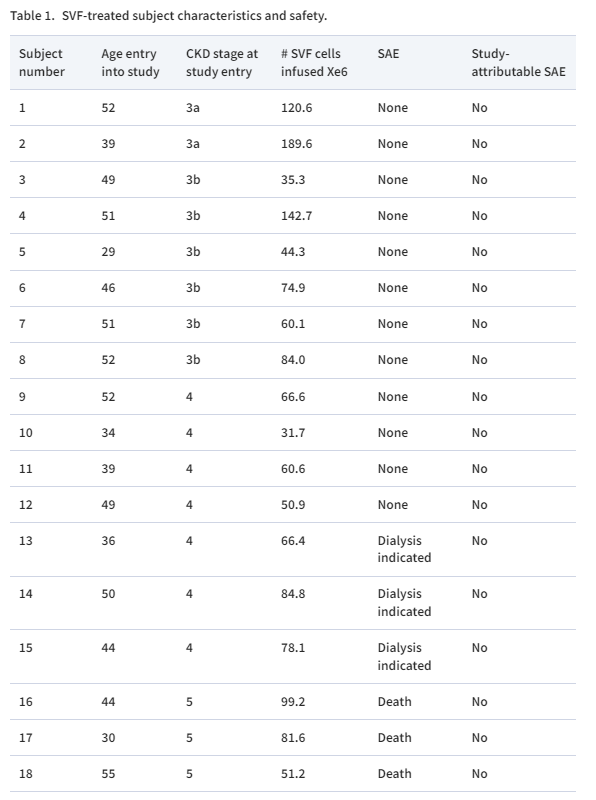 沒有死亡歸因于研究侵入性操作或SVF細(xì)胞輸注。