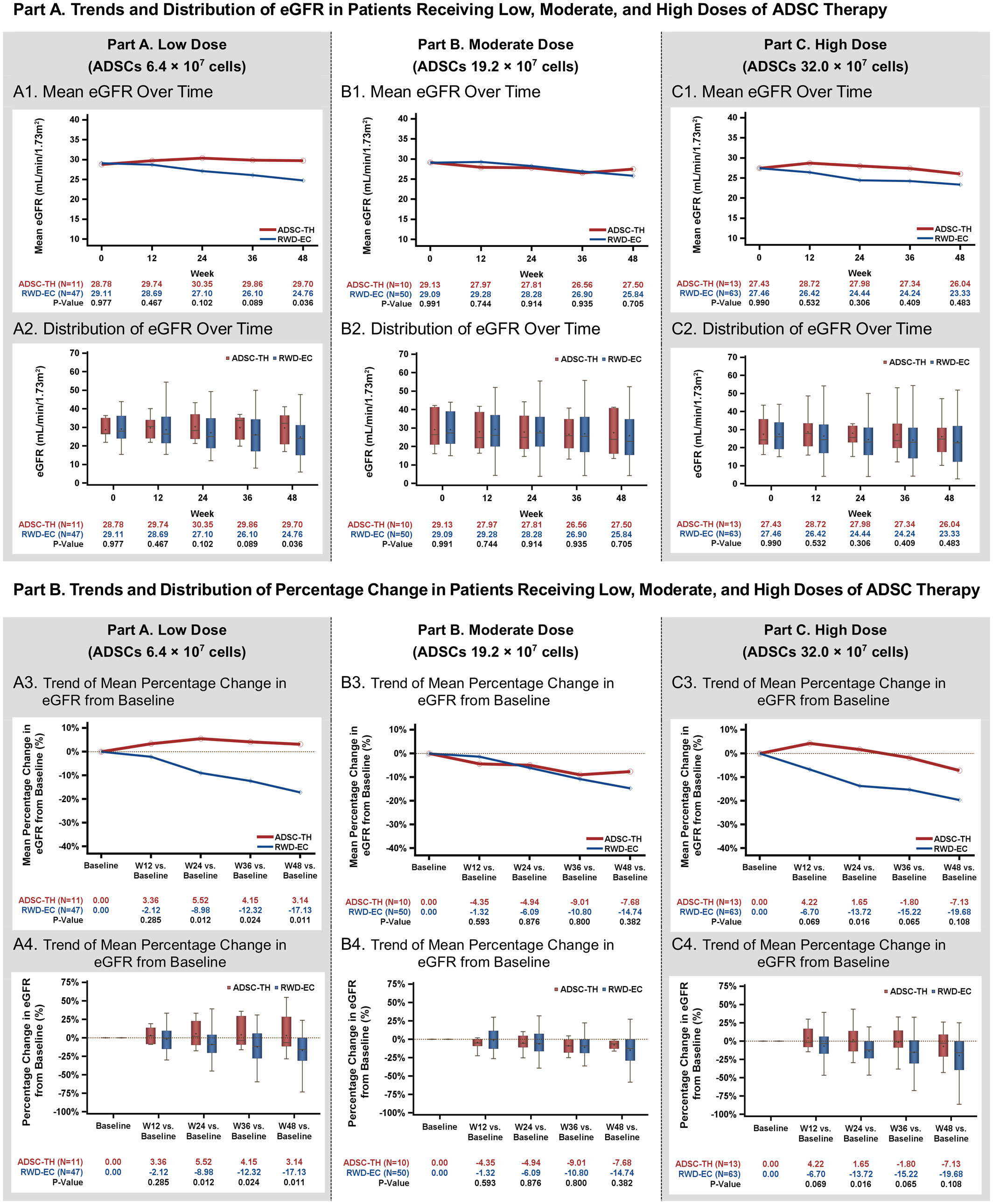 3.2、ADSC治療組與RWD EC組比較:ADSC治療穩(wěn)定腎功能,延緩eGFR下降
