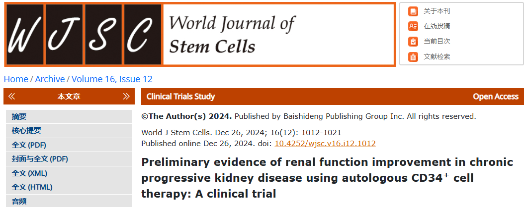 自體CD34+細胞療法改善慢性進行性腎病腎功能的初步證據(jù):一項臨床試驗