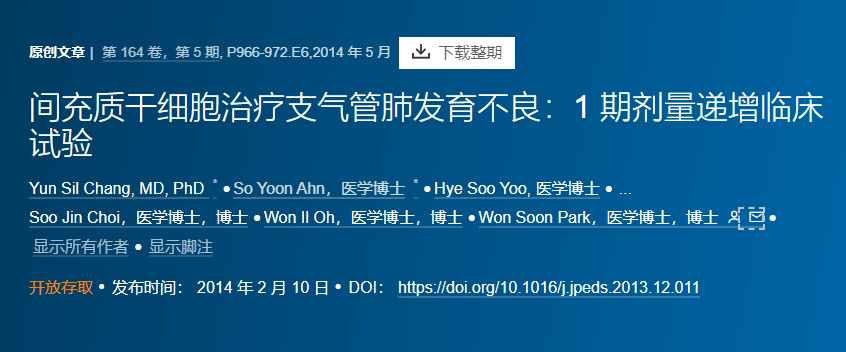 盡管目前正在進(jìn)行多項MSC治療BPD的臨床試驗,但迄今為止已經(jīng)完成并報告了兩項早產(chǎn)兒BPD的MSC移植臨床試驗。