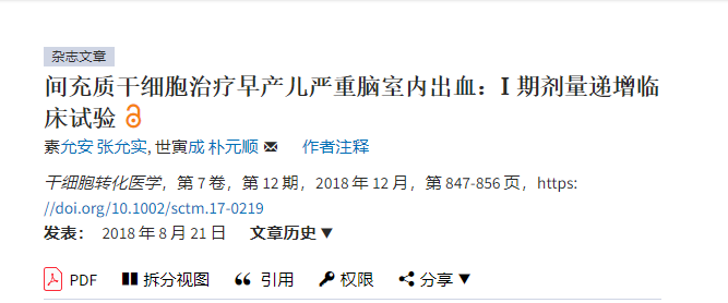 間充質(zhì)干細(xì)胞治療BPD、IVH、HIE臨床試驗報道