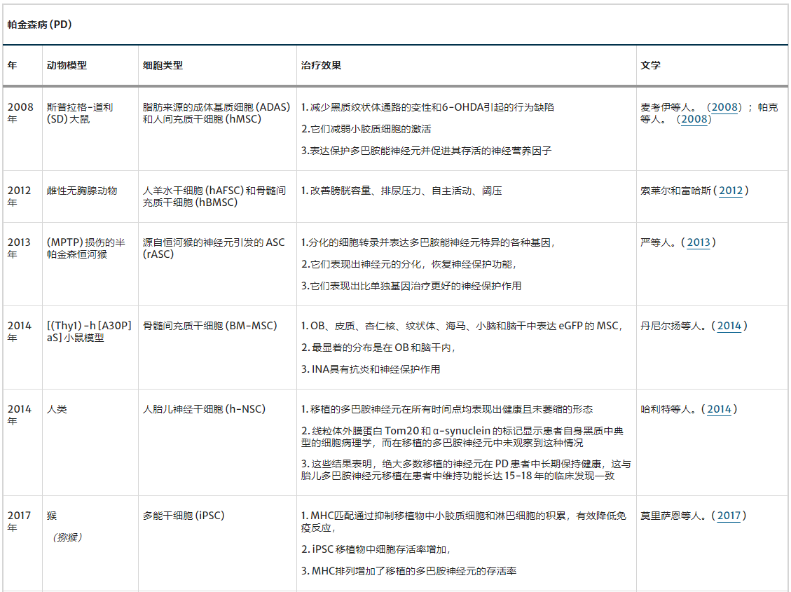 結(jié)論:積極的結(jié)果使我們可以考慮將間充質(zhì)干細(xì)胞移植作為帕金森病的一種疾病緩解治療策略。然而,這種PD治療方法并不是一個(gè)完全被理解的過(guò)程,這需要額外的研究和更長(zhǎng)的隨訪期來(lái)監(jiān)測(cè)患者移植后的狀況。