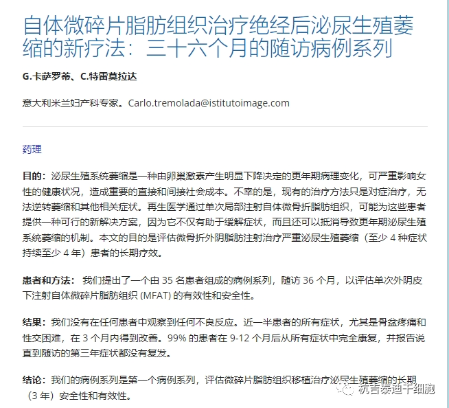 與迄今為止可用的所有其他療法(例如激光療法、射頻、磁刺激、局部雌激素療法等)相比,GSM治療的這些結(jié)果使MSC成為最持久的療法,并且由于沒(méi)有描述任何副作用,也完全安全。