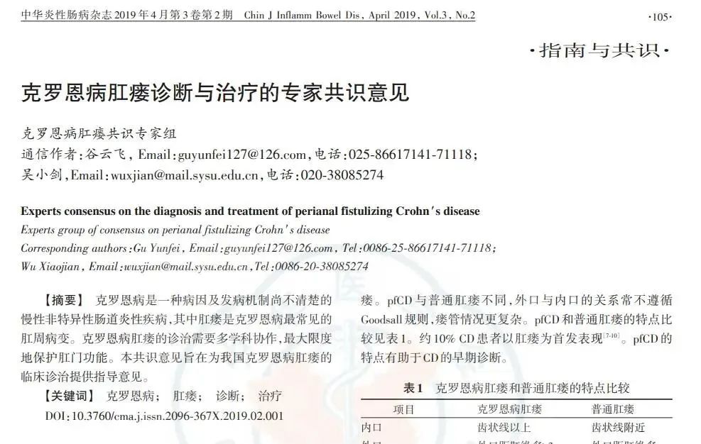發(fā)布機構(gòu):克羅恩病肛瘺共識專家組