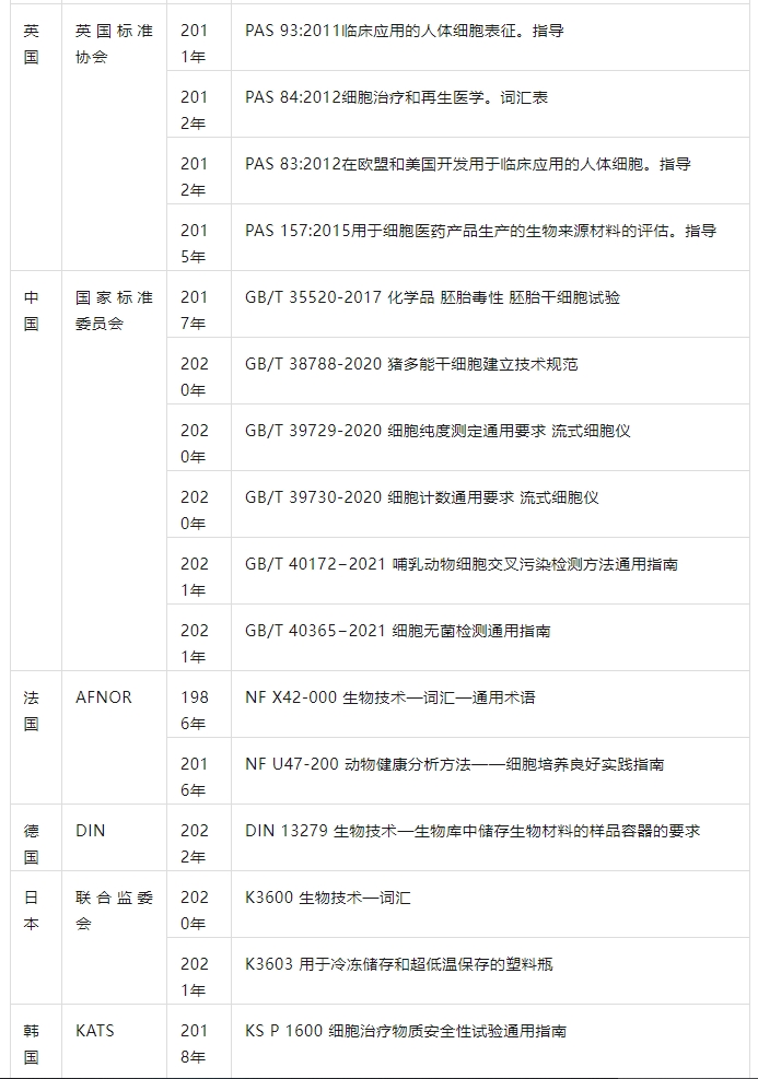 干細胞療法相關標準制定現(xiàn)狀