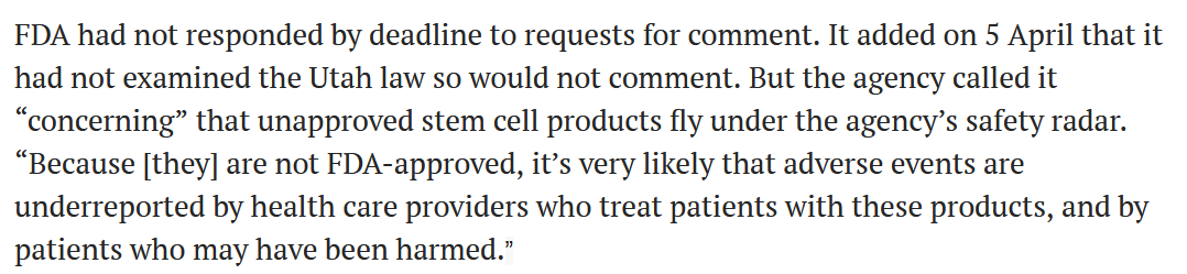 消息原文網(wǎng)址:https://www.science.org/content/article/utah-flouts-fda-law-greenlighting-placental-stem-cell-therap