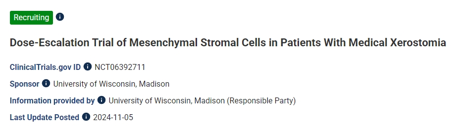 其劑量遞增步驟將招募多達18名患者。第一組將向兩個頜下腺分別注入1000萬個間充質(zhì)基質(zhì)細胞。如果耐受性良好,隨后接受治療的患者將向每個腺體注入更高劑量的2000萬個間充質(zhì)基質(zhì)細胞。然后,將在擴展步驟中使用最高安全劑量,對12名患者進行治療。