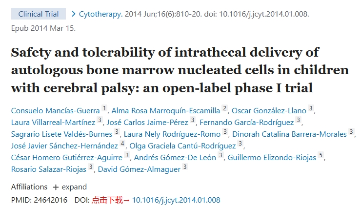 腦癱兒童鞘內(nèi)注射自體骨髓有核細(xì)胞的安全性和耐受性:一項(xiàng)開放標(biāo)簽I期試驗(yàn)