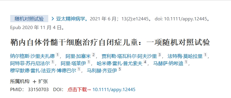 鞘內(nèi)自體骨髓干細(xì)胞治療自閉癥兒童:一項(xiàng)隨機(jī)對照試驗(yàn)