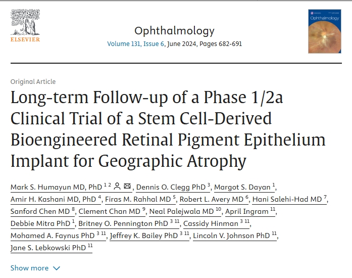 干細(xì)胞衍生的生物工程視網(wǎng)膜色素上皮植入物治療地圖狀萎縮的1/2a期臨床試驗(yàn)的長期隨訪