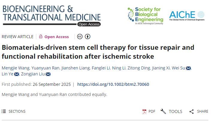 [12]Wang?M,?Ran?Y,?Liang?J, et al.?Biomaterials-driven stem cell therapy for tissue repair and functional rehabilitation after ischemic stroke.?Bioeng Transl Med.?2025;?10(6):e70060. doi:10.1002/btm2.70060