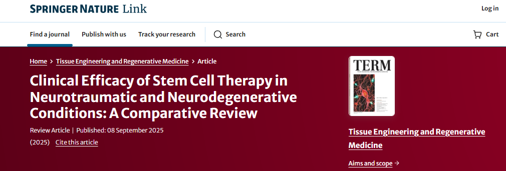 [9]Ku, J.B., Pak, R.J., Ku, S.S. et al. Clinical Efficacy of Stem Cell Therapy in Neurotraumatic and Neurodegenerative Conditions: A Comparative Review. Tissue Eng Regen Med (2025). https://doi.org/10.1007/s13770-025-00757-2
