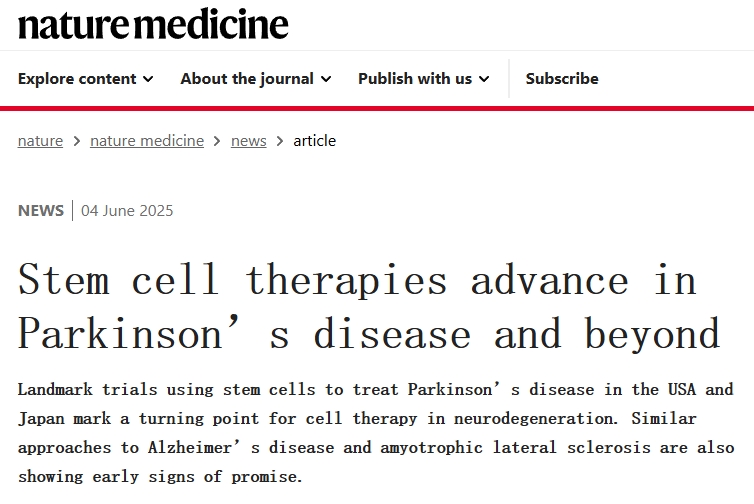 2025年4月,《自然》(Nature)雜志同時(shí)刊登了兩項(xiàng)干細(xì)胞治療帕金森病的重量級(jí)研究,展示了干細(xì)胞療法的巨大潛力:不僅安全有效,還有望真正實(shí)現(xiàn)對(duì)多巴胺神經(jīng)元的修復(fù)。同時(shí)也表明了,美國和日本利用干細(xì)胞治療帕金森病的試驗(yàn)具有里程碑意義,標(biāo)志著神經(jīng)變性細(xì)胞療法的轉(zhuǎn)折點(diǎn)。治療阿爾茨海默病和肌萎縮性脊髓側(cè)索硬化癥的類似方法也初露端倪。