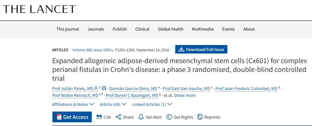 安全性結(jié)果 (Panés等: 在安全性方面,Cx601組(103例可評估)治療相關(guān)不良事件發(fā)生率(17%)低于安慰劑組(29%)。最常見的不良事件是肛門膿腫(Cx601組6例vs安慰劑組9例)和直腸痛(5例vs9例)。研究結(jié)論認(rèn)為Cx601是治療對常規(guī)或生物療法無效的克羅恩病復(fù)雜肛周瘺管的一種有效且安全的療法。